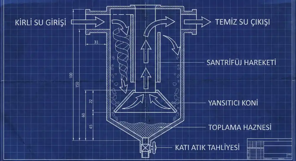 Seperatör filtreler, katı-sıvı ayrıştırmasında fiziksel bir ilke olan santrifüj kuvveti esasına göre çalışır. Sistem, suyun içindeki maddeleri özgül ağırlık farkına göre ayıklar: